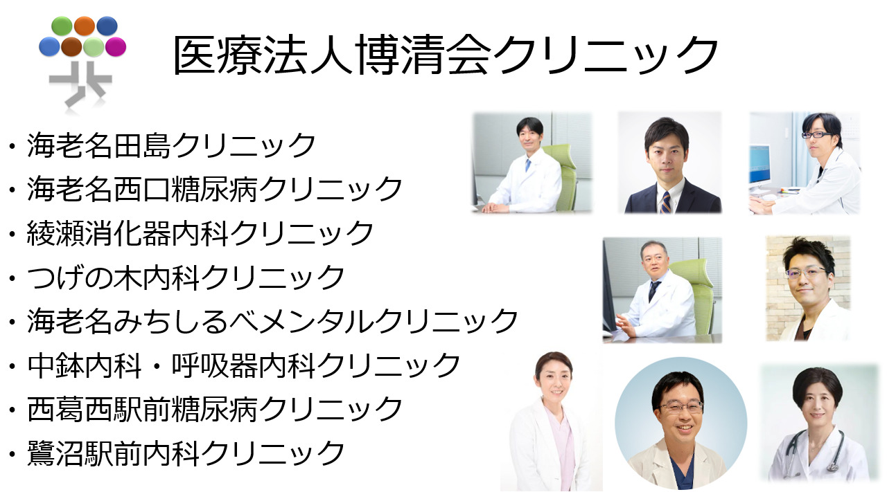 1986年に東京で始まった博清会は2010年に現理事長の田島博人が海老名田島クリニックを開設し、以後複数の仲間と複数のクリニックをスタートしてきました。我々は『自己の成長によって地域医療に貢献し人々の幸せを願う』ことを理念とし海老名市を中心に診療を行っています。常に成長し考え、専門性の高い医療を地域の方々にご提供できればと考えています。